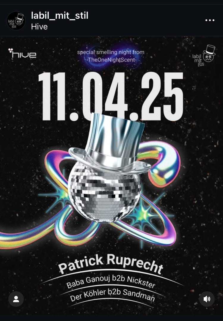 collabs .Labil mit Stil im HIVE - zürich übermorn!OneNightScentApr. 09, 20252Teilensound&scentsound & duft, die magische synergieZurückWeiter